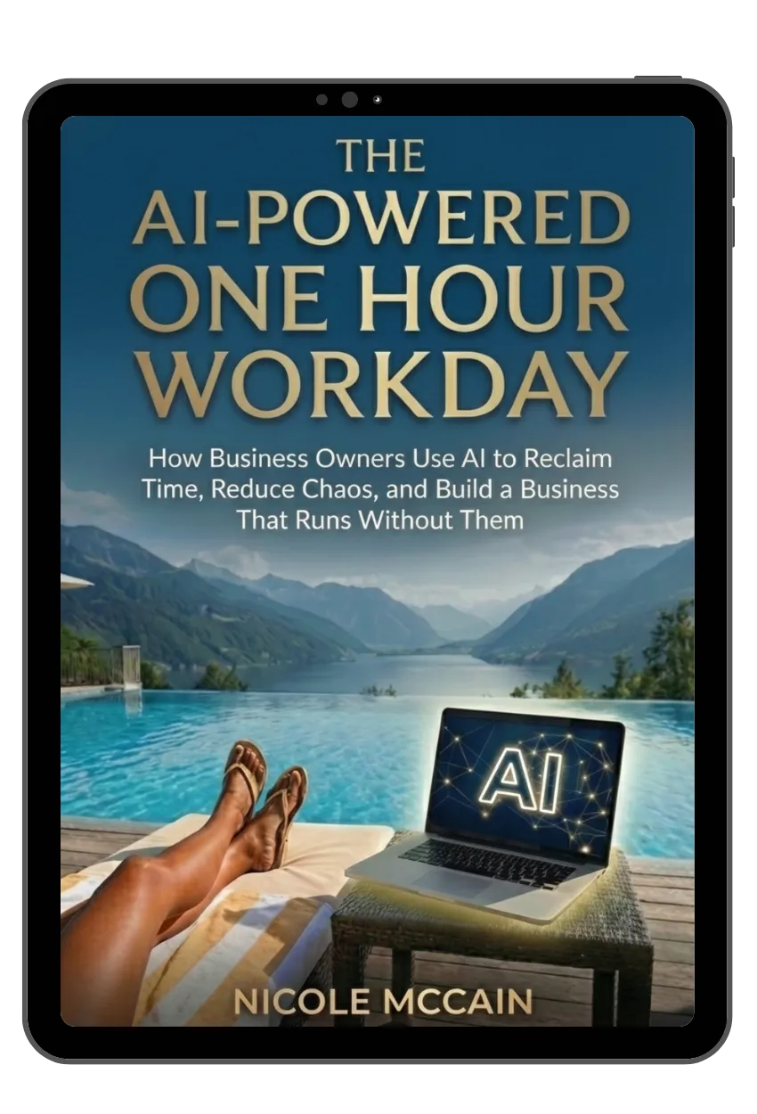 In the AI-Powered One Hour Workday Book Nicole McCain pulls back the curtain on the invisible tasks, micro-steps, and mental load silently stealing your time and energy.
